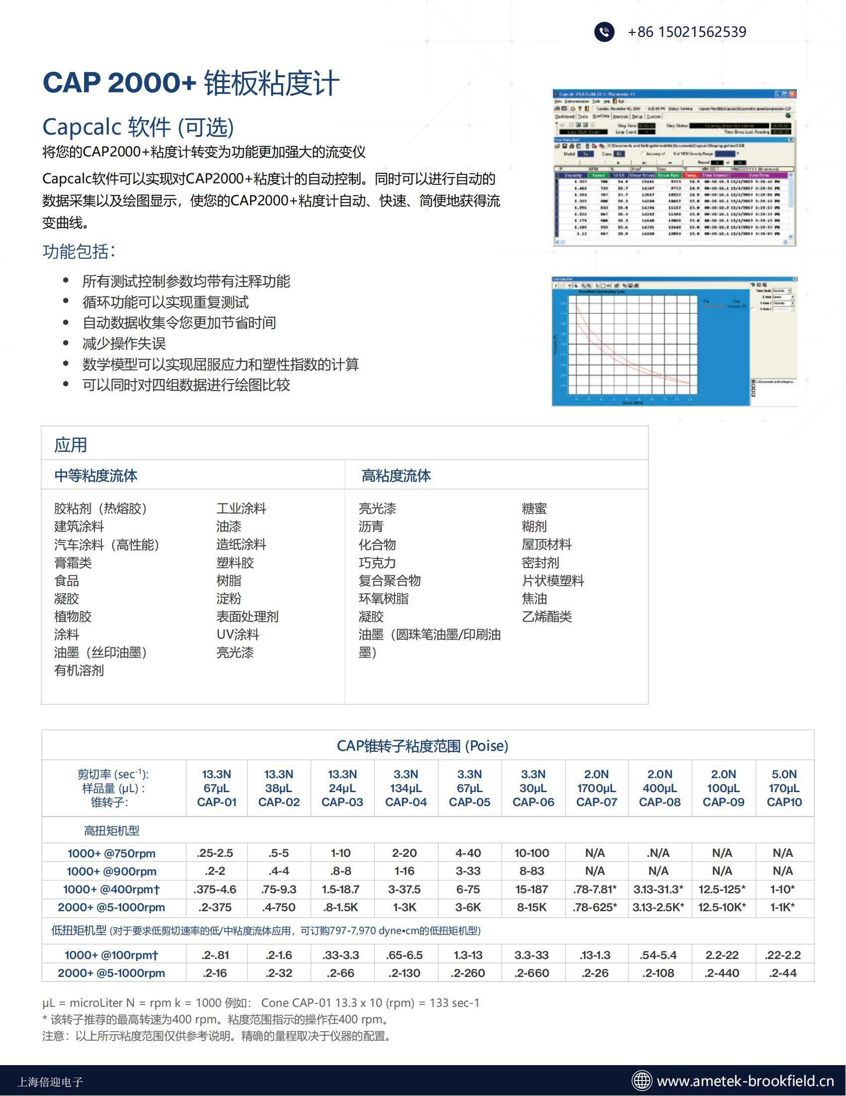 1. 粘度:0.2 - 15,000 泊
