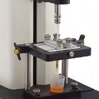 | 適用于果泥、布丁、酸奶或類似產(chǎn)品的前向后擠壓。要求使用夾具基臺(tái)。 | 用于量化材料的涂抹力。配有一個(gè)外錐探頭,5個(gè)樣品杯和7個(gè)樣品杯座。要求使用夾具基臺(tái)。 |